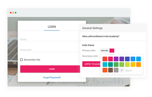 Make the online employee training management system look like it belongs to your organization! You can white-label your online training academy with the following: