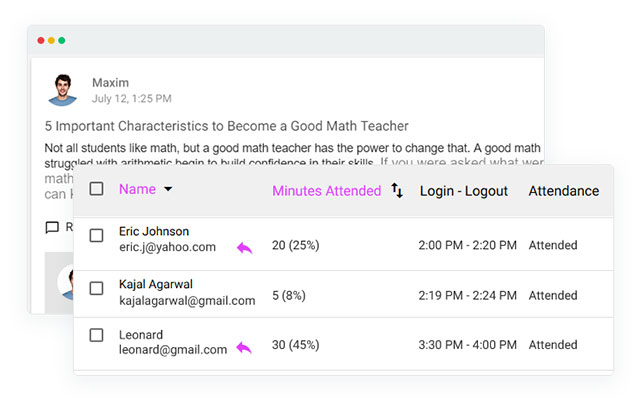 - Downloadable CSV reports with names of the attendees, time spent in the class and downloads by the employees (if any)